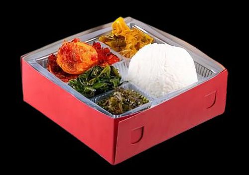 Paket Nasi Box Telur Isi - Nasi putih - Daun Singkong - Sayur Kapau - 1 Lauk ayam (Telur Balado/ Telur Gulai)
