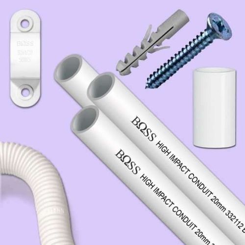 - Pipa conduit PVC 20mm, panjang 2.8 meter - Sock pipa 20mm - Klem pipa 20mm - Spiral/flexible - Fischer + sekrup